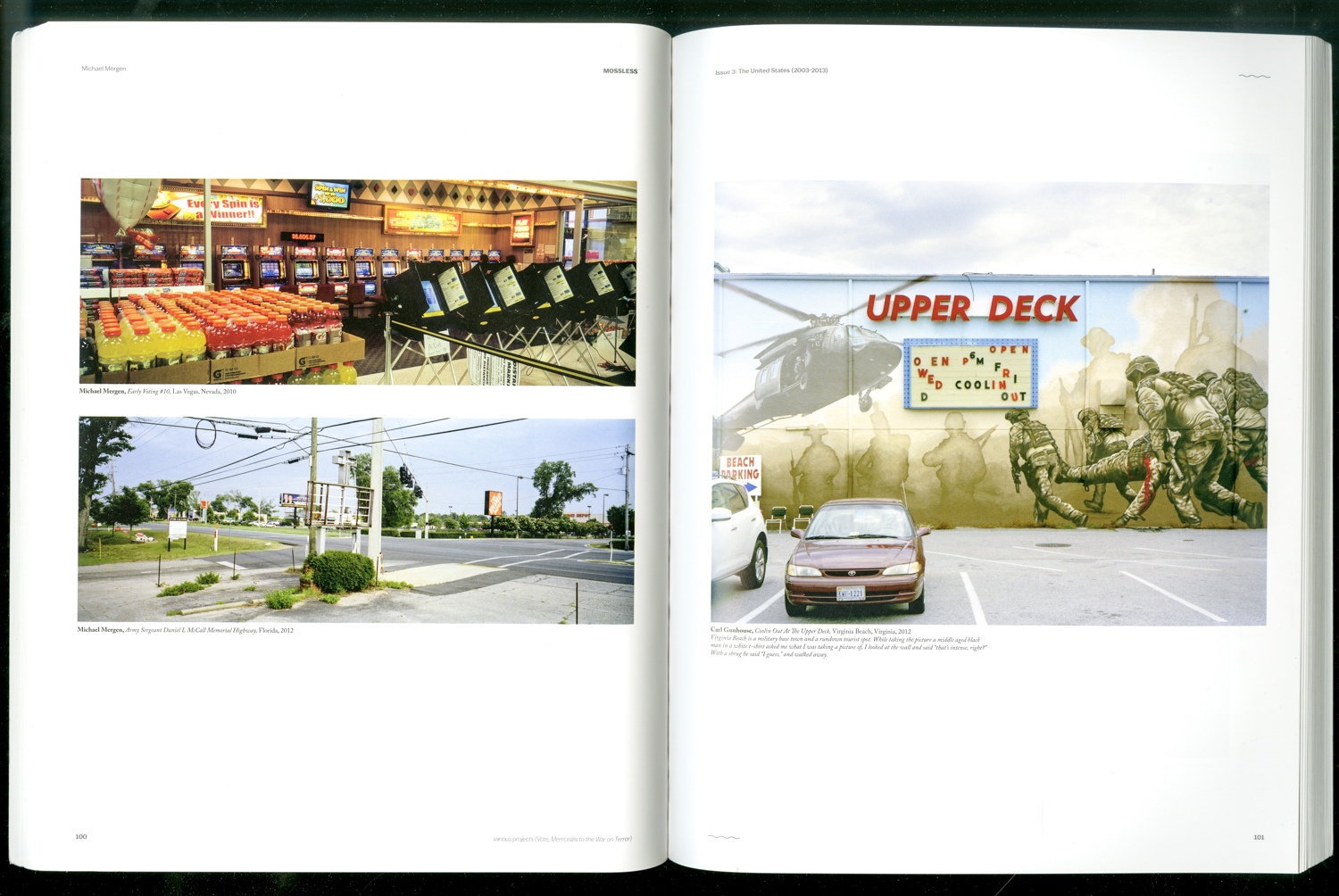 A survey of contemporary (and emerging) photography of America with a sequence of over 500 photographs meandering from the desert and ending in the metropolis. Published at an edition of 2500, fundraised through Kickstarter. A set of four risograph and inkjet (mixed pages) zines were also produced for this campaign. Listed as a top photobook of 2014 by Time Magazine ︎
