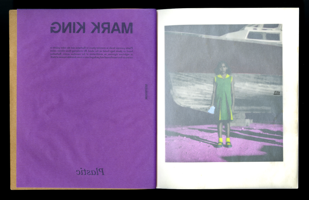 This collaborative project between Mark King and Mossless featured his work of local creatives from his native Barbados, shot in black and white and colored using the plastic bags he found in the area. Using vellum interleaves, this concept was transposed into the book’s format. The book was inkjet printed and hand-bound at an edition of 50 and was released at the 8-Ball Newsstand in the Lorimer-Metropolitan subway station.